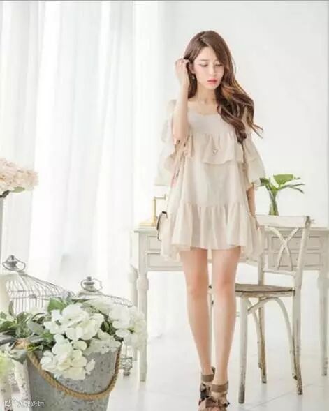 碎碎念:这套搭配整体来看是文艺小清新的,仙气十足,上衣的露肩设计又为整套搭配增添了一点小性感。雪纺+纱裙夏天既凉快又有气质、又有女人味,出去拍照或者旅游都是最好的选择!