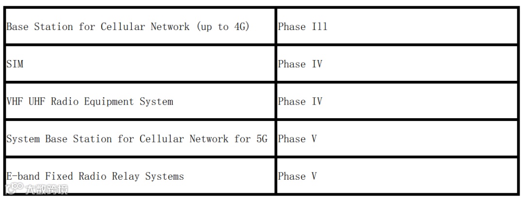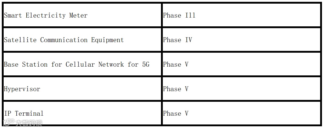 2、对于第三/四/五批强制性认证产品中的如下5类产品,非接壤邻国的ILAC报告接受日期推迟至2024年9月30日: