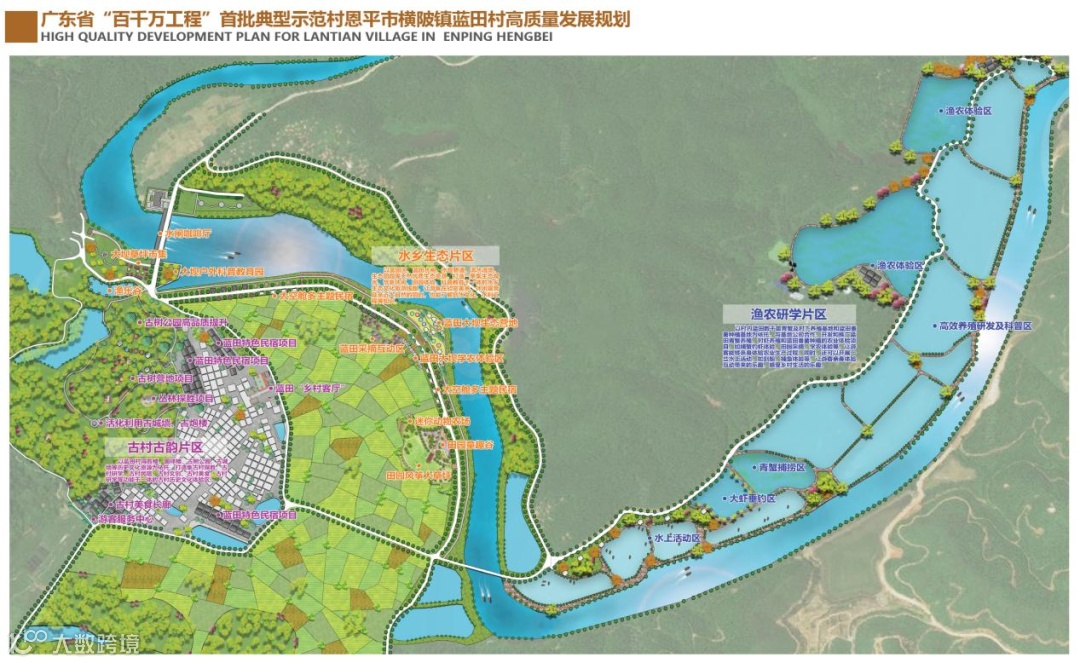 五邑大学土木建筑学院派驻团队与村委会、农户共同编制完成《蓝田村“百千万工程”高质量发展规划》,涵盖生态科普教育片区、古村古韵片区、渔农研学片区等功能区。其中,蓝田古树公园、大坝生态营地、青蟹养殖基地研学点等7个近期实施项目已全部落地。