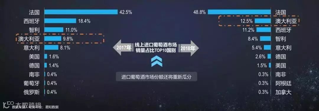澳洲葡萄酒在中国大陆市场持续走强,从2017年的市场第四,跃升至2018年的市场第二,占大陆葡萄酒市场份额的12.5%,仅次于法国葡萄酒。