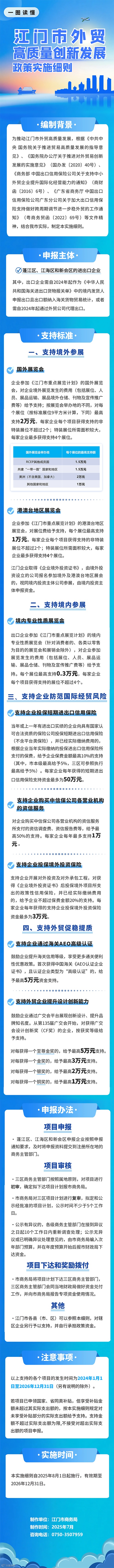 一图读懂|江门市外贸高质量创新发展政策实施细则