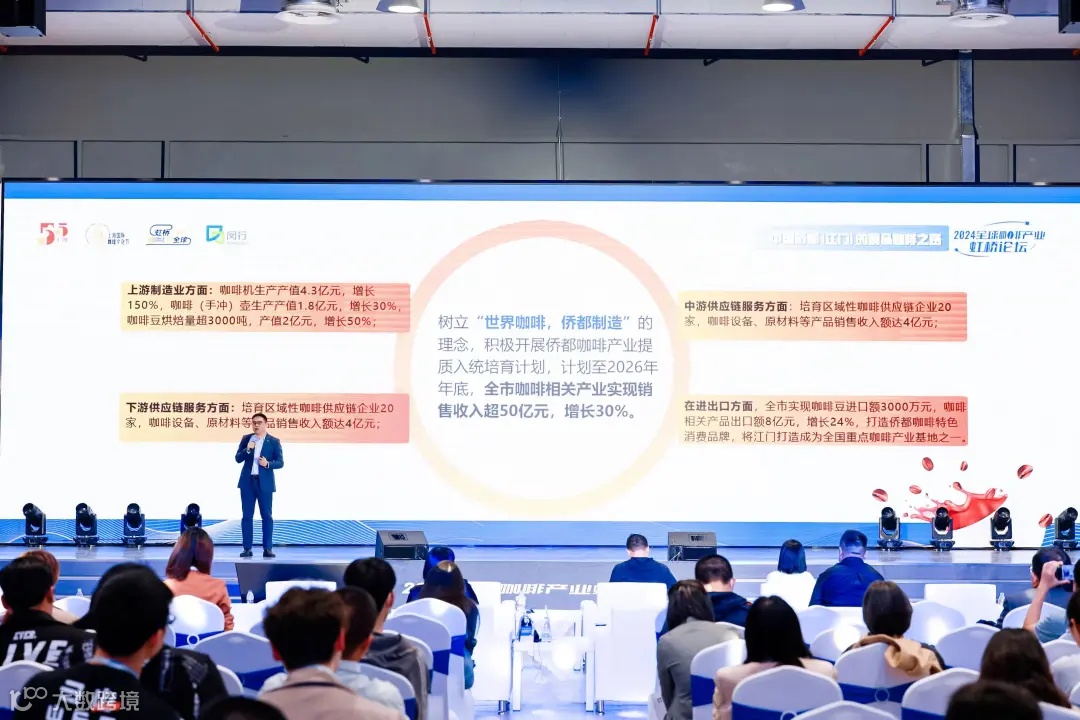 围绕“世界咖啡,侨都制造”的理念,分别从江门咖啡的产业情况、发展之路、未来计划等几个方面进行分享。