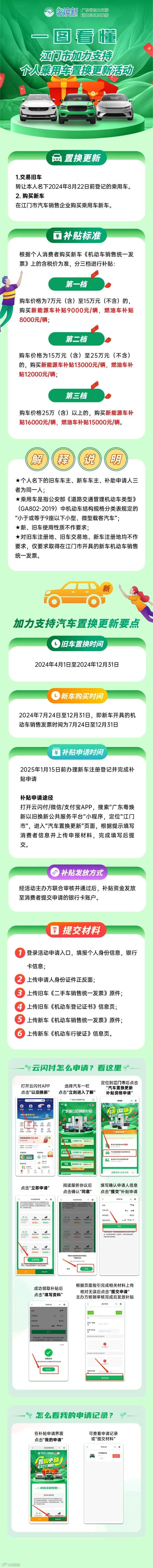 旧车注册登记地、转让地、新车注册登记地均没有限制在江门市,全国范围内都可以。但是新车发票开具地必须由江门市汽车销售企业开具。