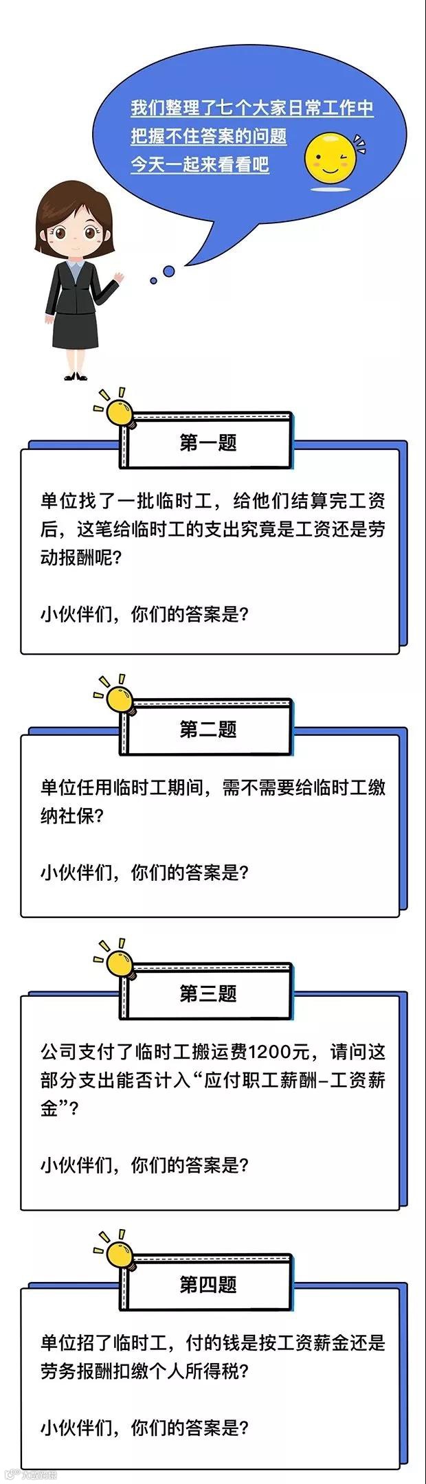 今天结合税务总局最新口径,为大家梳理了7个关于临时工做账的热点问题!