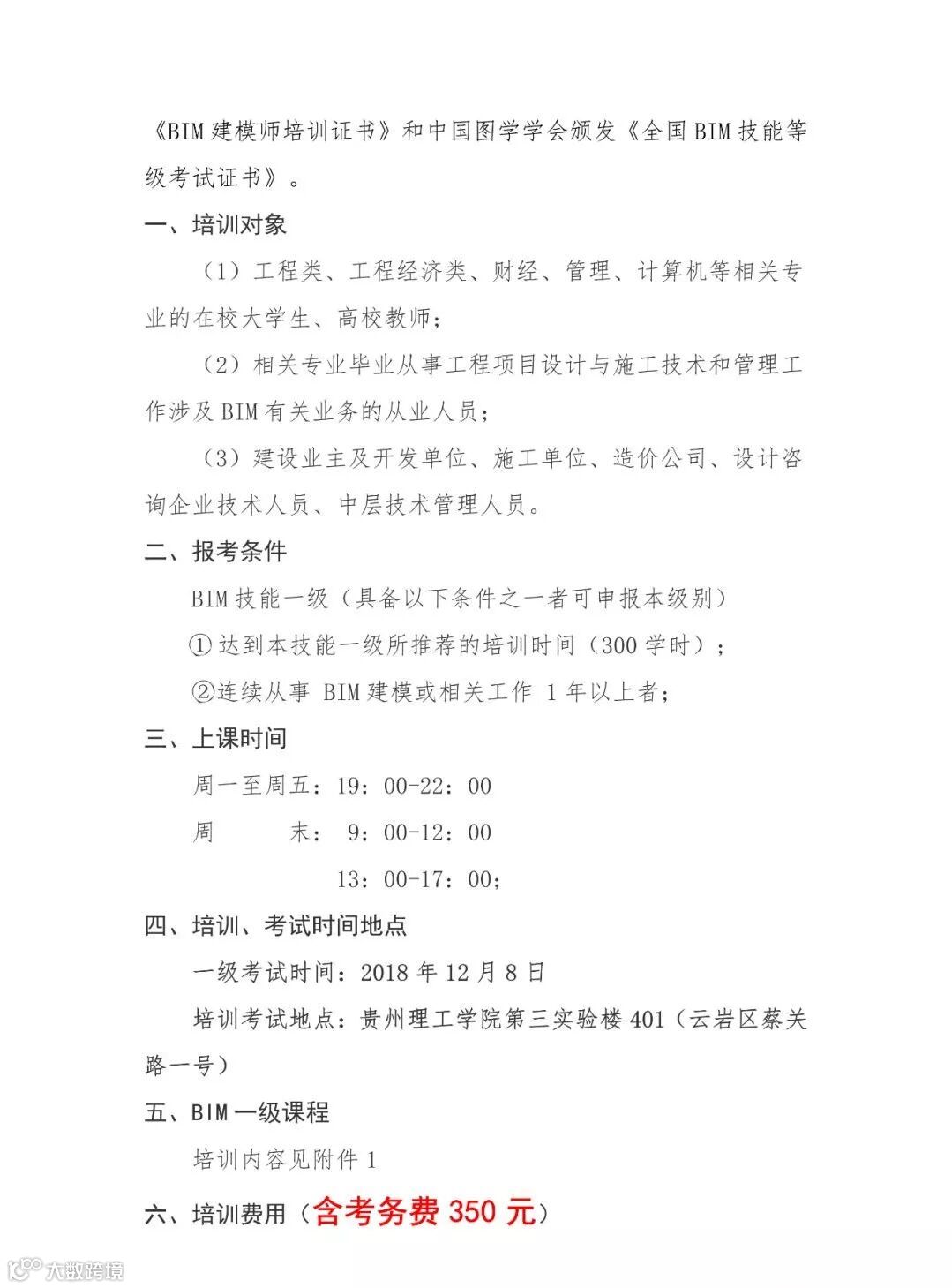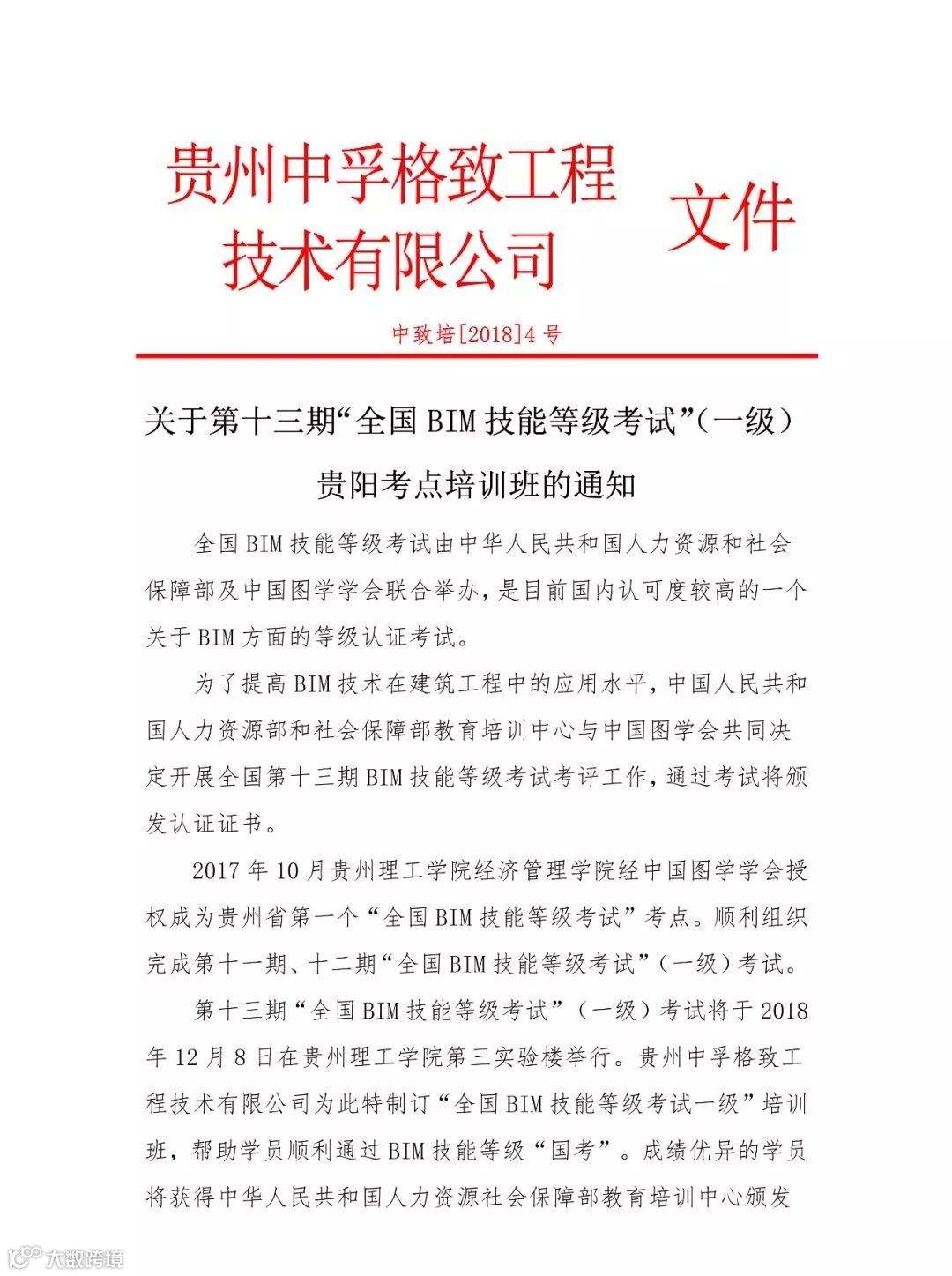 导读:重磅!第十三期“全国BIM技能等级考试”(一级)考试将于2018年12月8日在贵州理工学院举行,贵州中孚格致工程技术有限公司为此特制订“专业培训班”,助学员们顺利通过BIM技能等级“国考”!