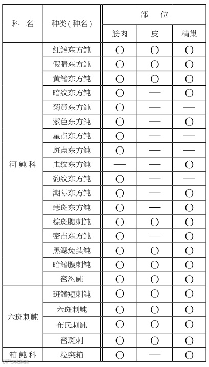 2,本表只适用于在渤海,黄海及东海;日本沿岸,日本海捕获的河豚鱼。
