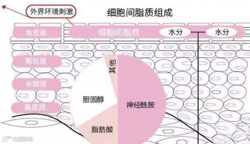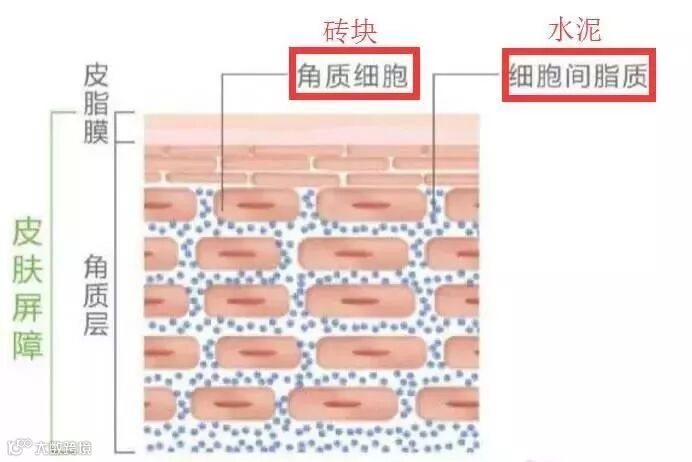 角质层是一种砖墙结构,其中,“砖块”就是角质细胞,而砌墙用的“水泥”就是细胞间脂质!