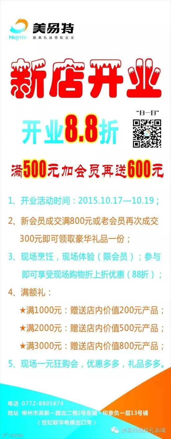 (一次性购满500元即可免费办VIP会员卡,仅限柳州美易特体验馆)