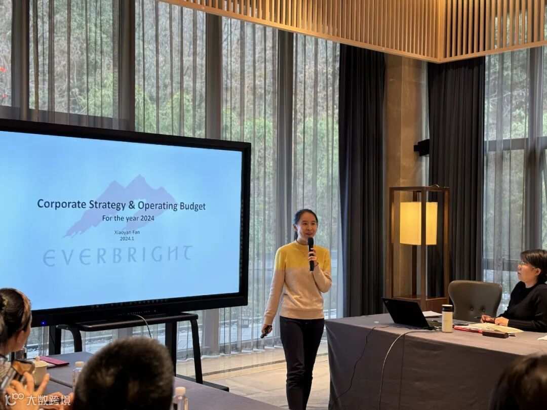 会议上各部门高管对过去一年的工作进行了总结,畅谈了新一年的工作方向和计划。总经理Peak从销售额、客户分布、供应链开拓、内部组织架构等方面做了全维度的分析。随后,董事长范晓雁女士全面总结回顾了2023年度情况并提出2024年度的目标和任务。她表示为了2亿美元的销售目标,需要找到战略支点,如面料部采样能力的加强,技术中心的扩大,重视年轻人才的培养等。思想决定行动,今天主导明天,主动做好新局势的应对准备。