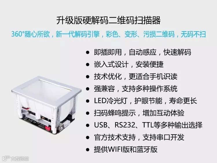 一家将领先的图像处理与机器视觉技术应用于数字解码技术研发与制造的物联网高科技企业。专注于二维码相关技术及硬件研发与制造。不仅为国内各大企业提供更优质、更高性价比的二维码扫描产品,也为合作伙伴提供二维码技术服务、二维码支付和金融整体解决方案。