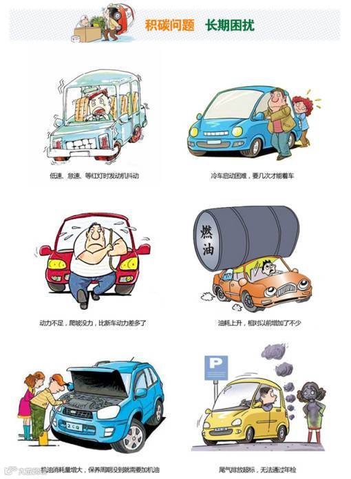 ③ 专门解决汽车发动机因“积碳”而导致的“发动机发抖、冷启动困难、行驶无力、敲缸、故障灯报警、燃油油耗增加、机油消耗量增大、尾气排放超标”等故障问题;