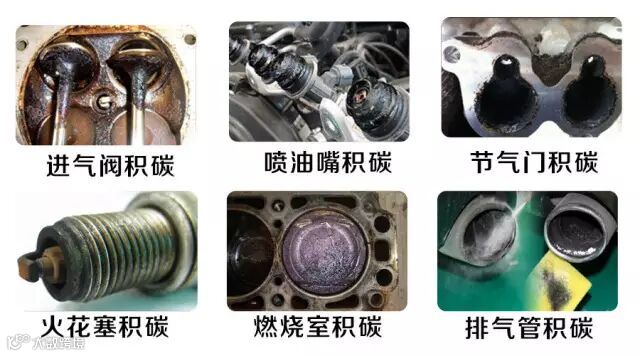 汽车积碳主要是因为发动机内部燃油的燃烧并不充分,而汽油中的许多不饱和烯烃和胶质的成分,就会于喷油嘴、节气门、油路管路、火花塞等部件中造成累积残留,并且在发动机高温的状态下,形成的黑色固体积碳。