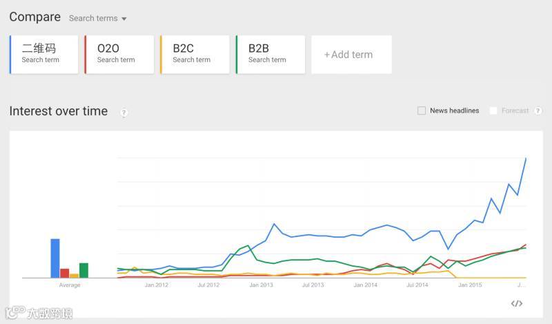 近几年中国移动互联网使用量激增,O2O也成为了电子商务领域里最大的一块蛋糕。从谷歌的搜索趋势来看,O2O正在变的越来越受欢迎,甚至超过了B2B,不仅如此,这股热潮也开始席卷到大洋彼岸的美国。行业巨头和初创公司都希望能在O2O这块大蛋糕中分到一杯羹,虽然二维码不是源自O2O行业,但它却是一个连接线上和线下两个渠道的强大工具,更是敲开O2O大门的一款利器。