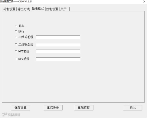 可根据个人需要对【回车】、【换行】、【二维码前缀】、【二维码后缀】、【NFC前缀】、【NFC后缀】选项进行勾选设置,默认勾选的是【回车】。