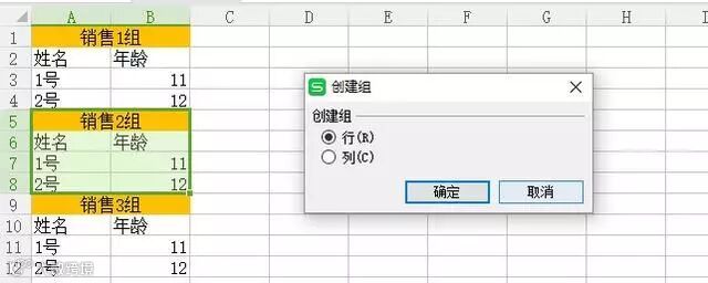 选中需要分组的单元格,然后点击“数据—创建组”,即可对当前选中的单元格进行分组。