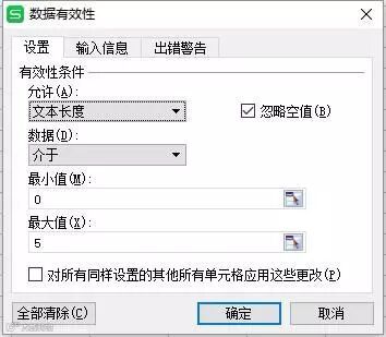 在“设置—允许”中选择“文本长度”,然后设置“最小值”和“最大值”