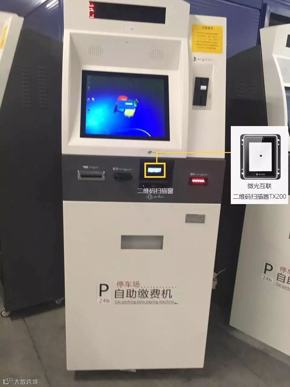 富士智能智慧停车场内自助缴费机支持微信、支付宝扫码支付,扫码支付窗口使用微光互联二维码扫描平台TX200,扫描灵敏,360度扫码,无需刻意对准,远一点、近一点、歪一点、斜一点,都可瞬间识读,大大提高了自助缴费体验感。