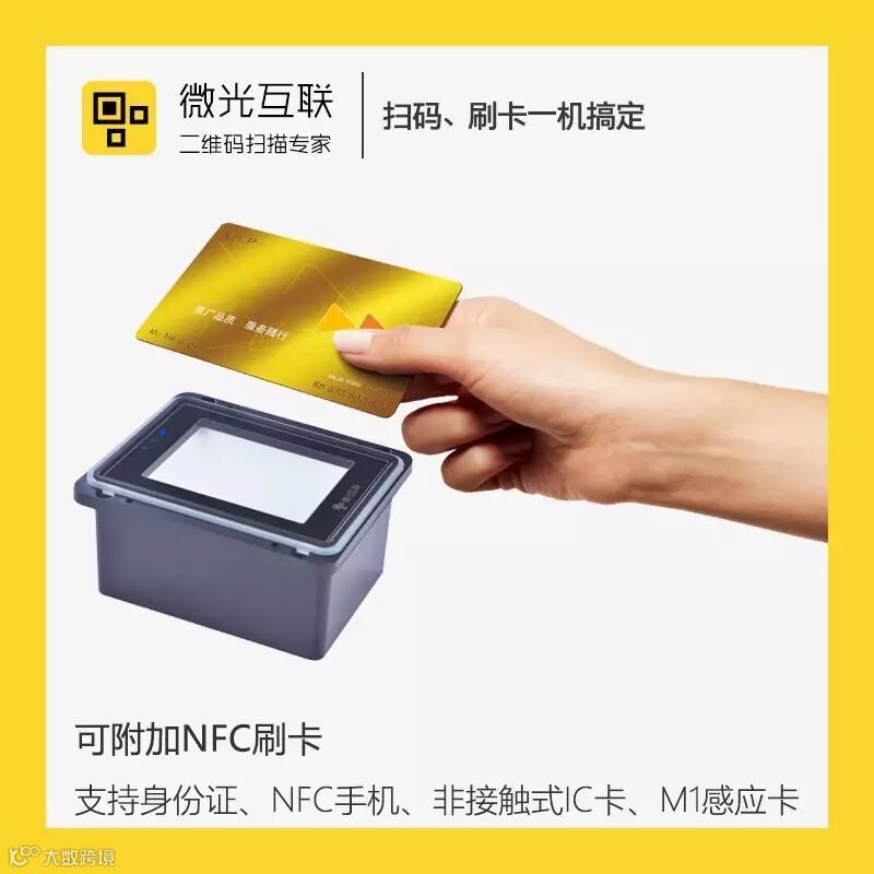 微光互联二维码扫描平台还可增加NFC刷卡功能,刷卡时识读窗会给出红光反馈,扫码、刷卡同时支持,不只是一款扫描器。