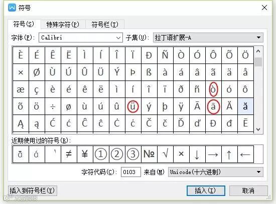 ②在弹出的窗口中选择“符号”选项卡,然后在“子集”中找到自己需要的音调。