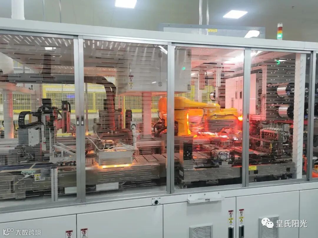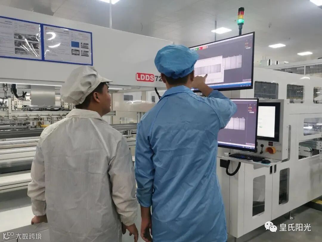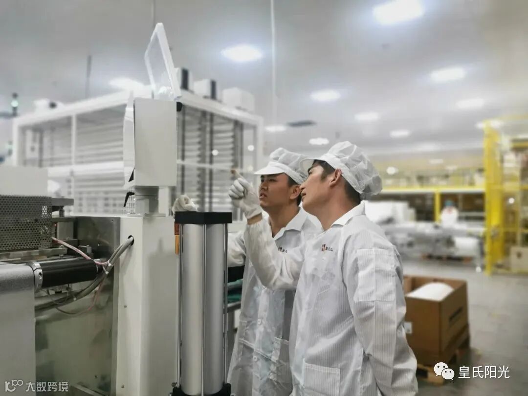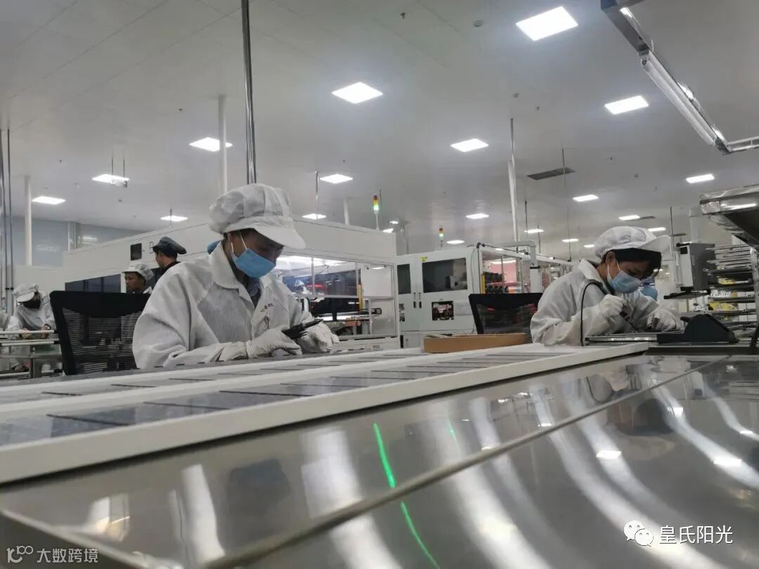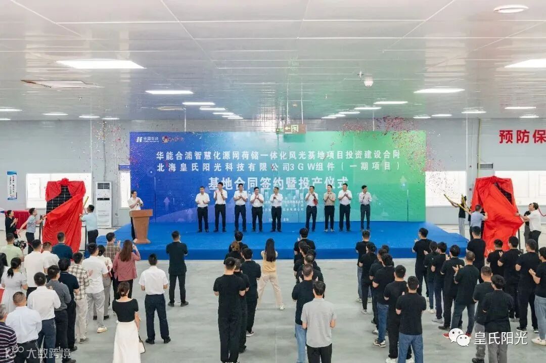 皇氏阳光本次投产的组件生产线是目前国内最智能化、效率最高、最先进的一流组件生产线,生产效率比传统生产线提高40%以上。皇氏阳光10GW光伏组件项目位于铁山东港产业园内,分两期建设,其中一期建设3GW光伏组件制造项目,计划投资额约15亿元,年产值约 60亿元,年缴纳税收约1亿元。二期7GW光伏组件制造项目投资额约35亿元,用地面积约250亩,年产值约140亿元,年缴纳税收约2.5。