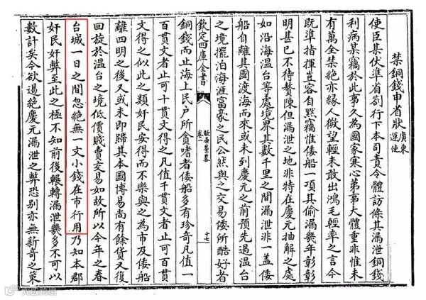 《四库全书》收录的《禁铜钱申省状》记载宋朝“钱荒”情况。
