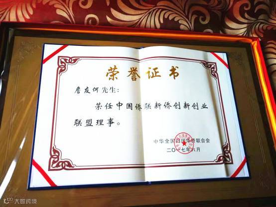 经广西侨联及相关行业组织推荐,并报请中国侨联审定,由“中国侨联主席会议”通过,詹友何董事长出任“侨创联盟”理事。