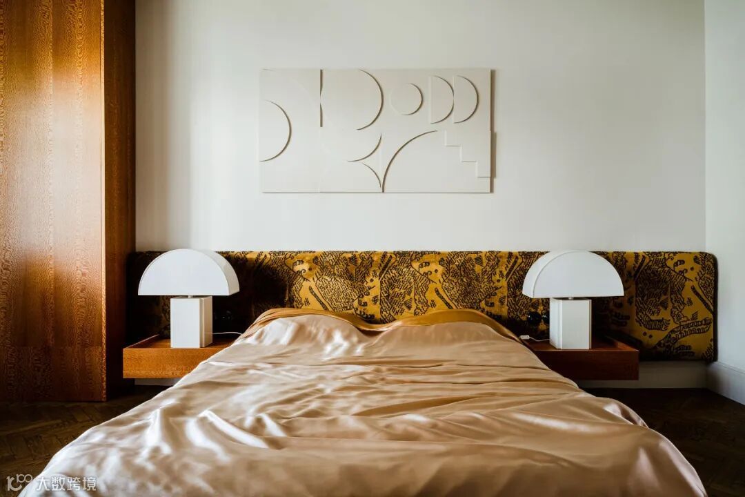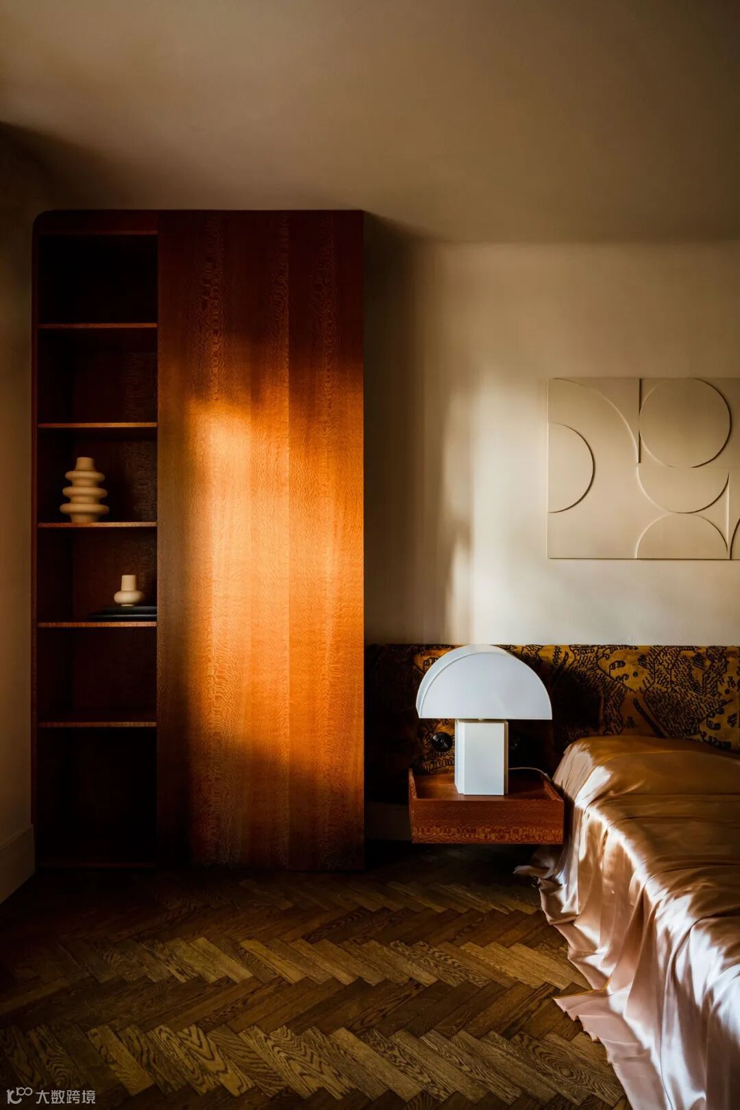 丝绸质感的床品与泛着红色光感的木柜形成呼应,独家设计的软垫床头靠背亦营造了私人定制的独特感,构建一个和谐、私密、奢华的私人领域。