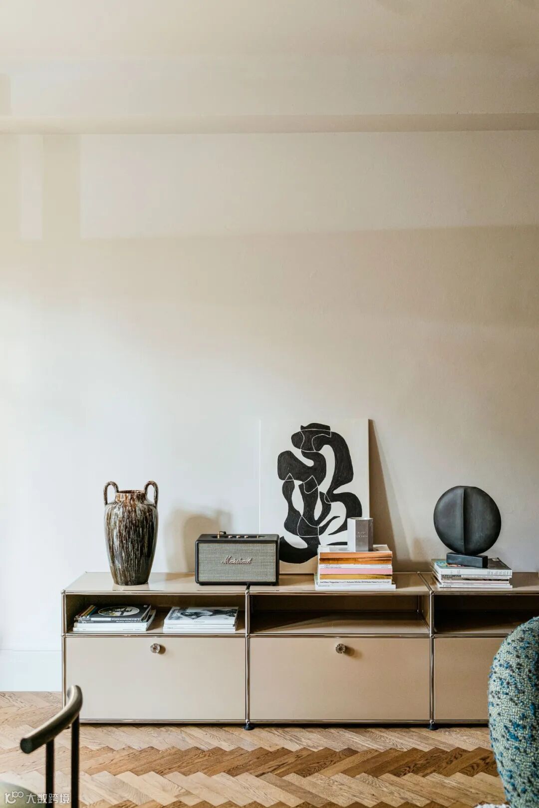 所谓虚实结合、疏放有度,华丽的物品只作为点缀。其他区域,以淡与素的奶油质感作为基础色,并且搭配各种设计感家具及饰品,以减少寡淡感。