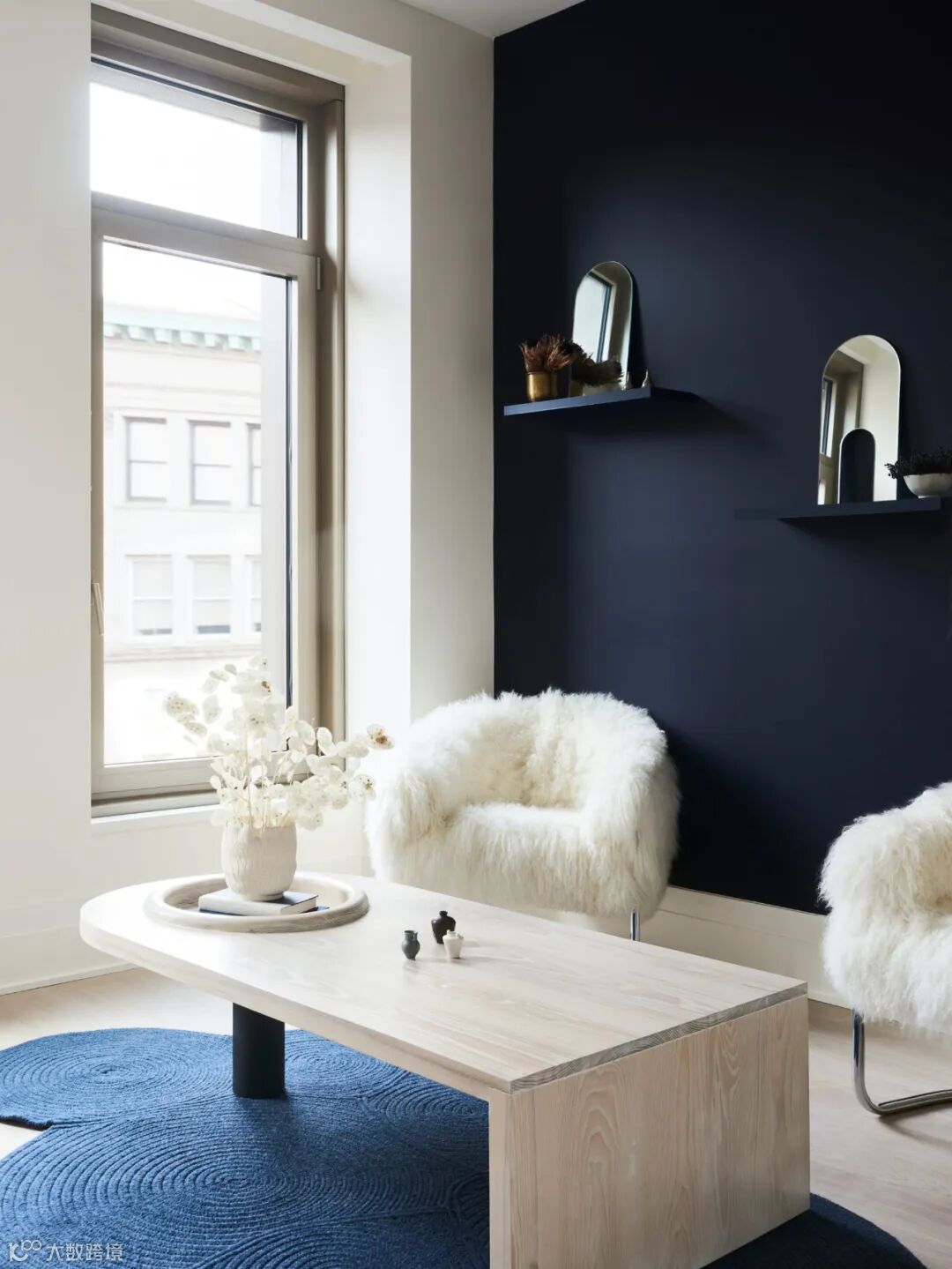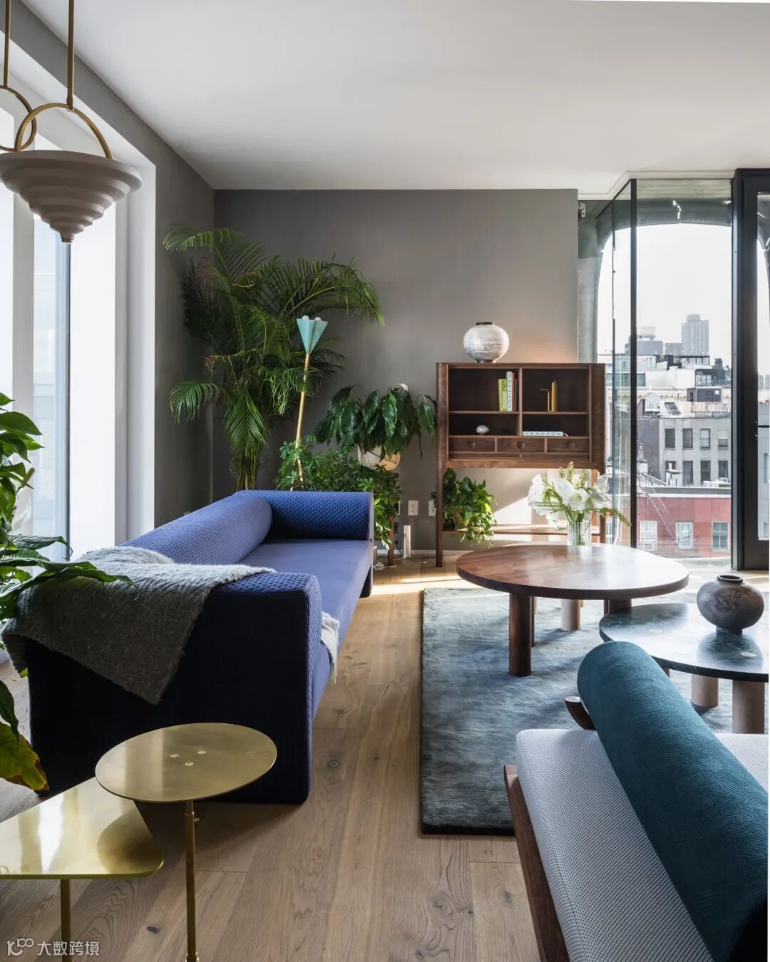 深灰色的色板中少了明亮,深邃的蓝染了多处,它形成的平静气氛,远离了商业区的喧嚣,埋头进仅属于自己的家庭时光。