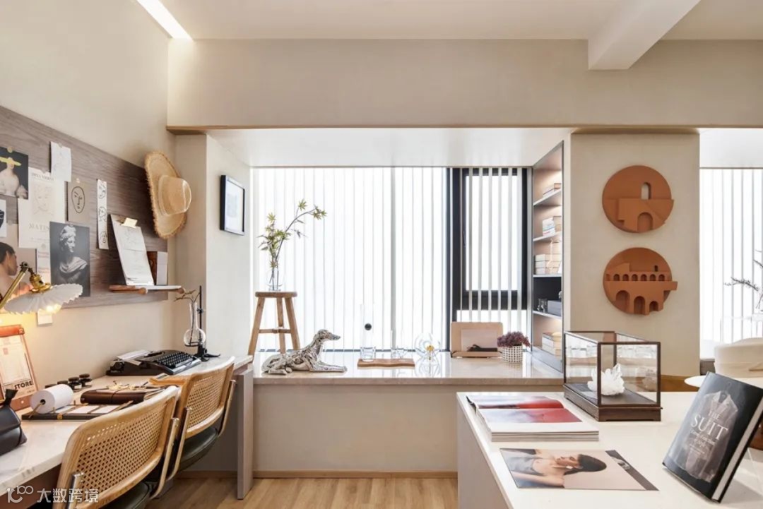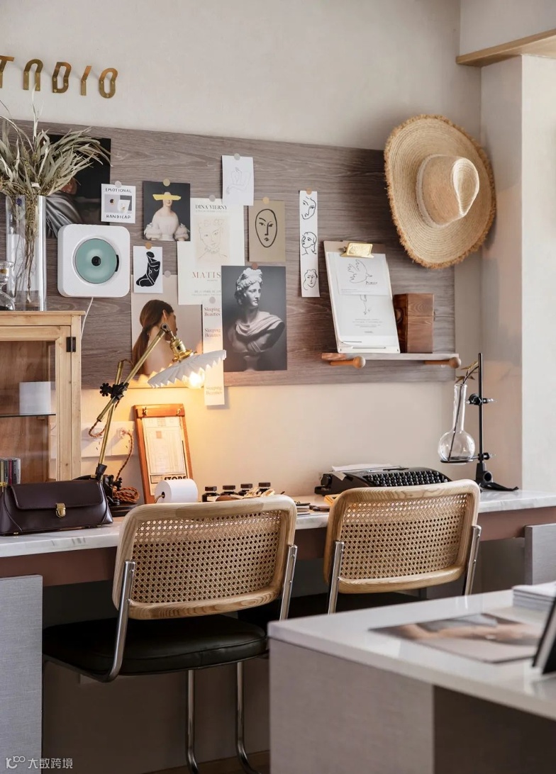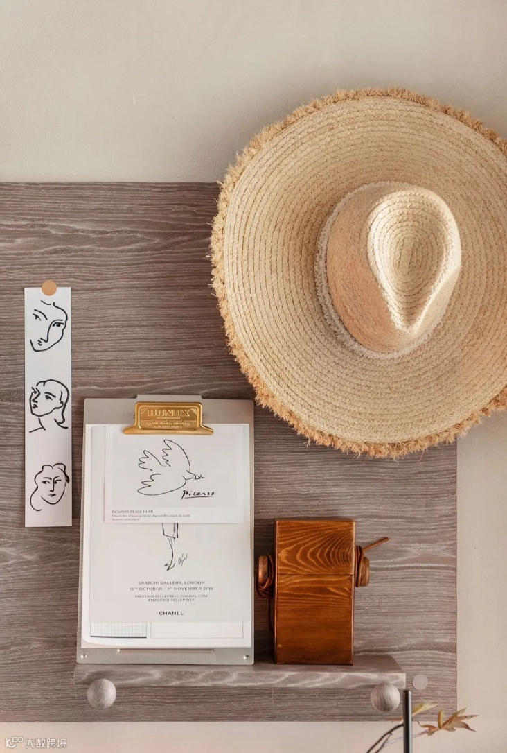 •利用墙上的挂画作为中心点,将四周的摆设铺展开来,形成一个由远到近的视觉体验。