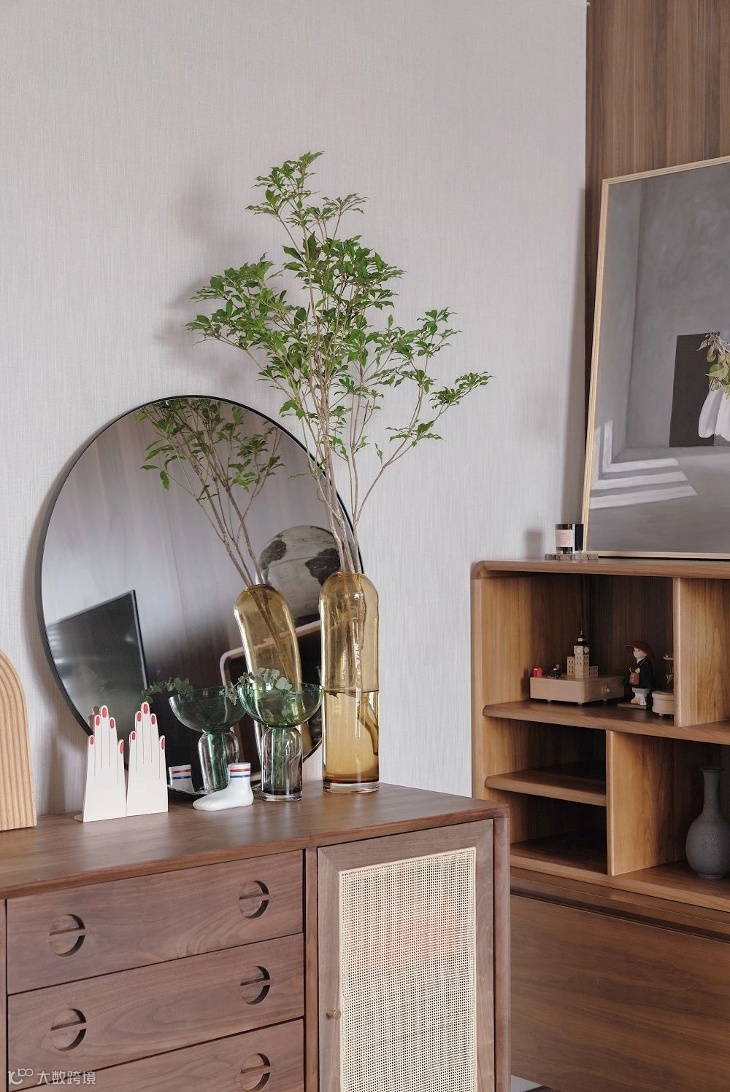 •软装布置应遵循多样与统一的原则,根据大小,色彩,位置等与家具构成一个整体,营造出自然和谐、富有生命力的搭配