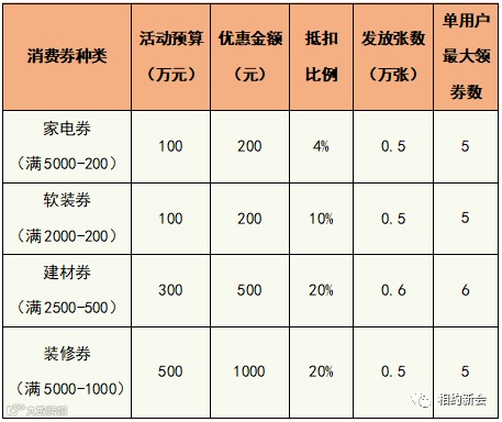 总额1000万元的家装建材家电消费券免费派送