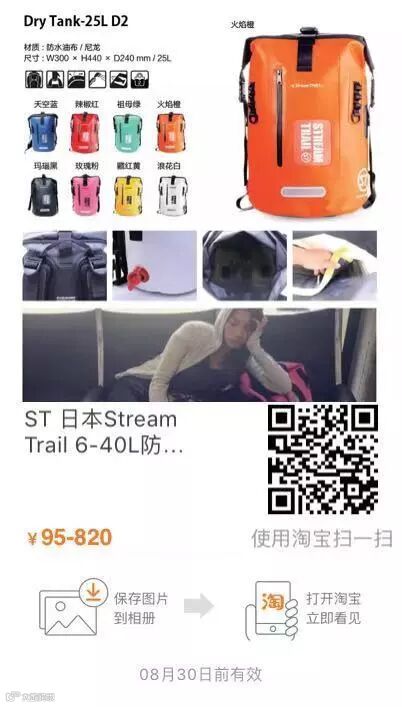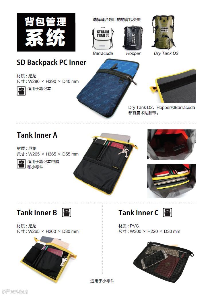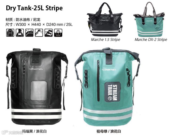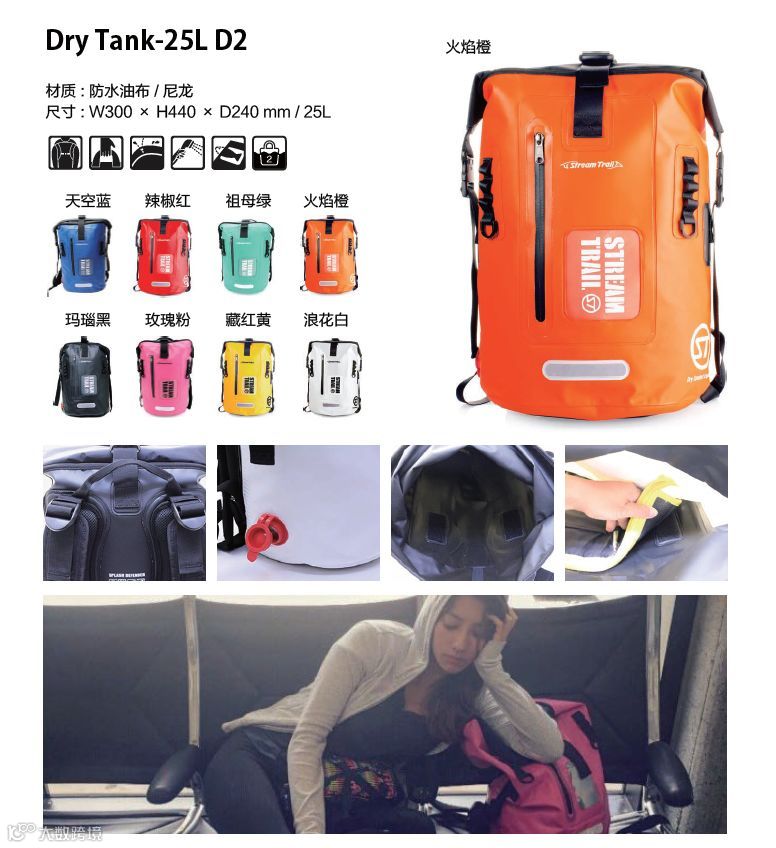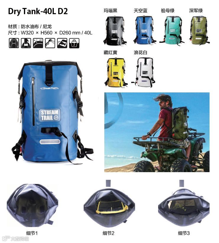 首先说一下,ST全名Stream Trail,是日本第一的防水袋产品,潜友们最喜欢的其实是名为Dry Tank系列的背包,一共有五个尺寸分别是60/40/33/25/18,颜色最多的要数40L和25L,分别有6色和8色,