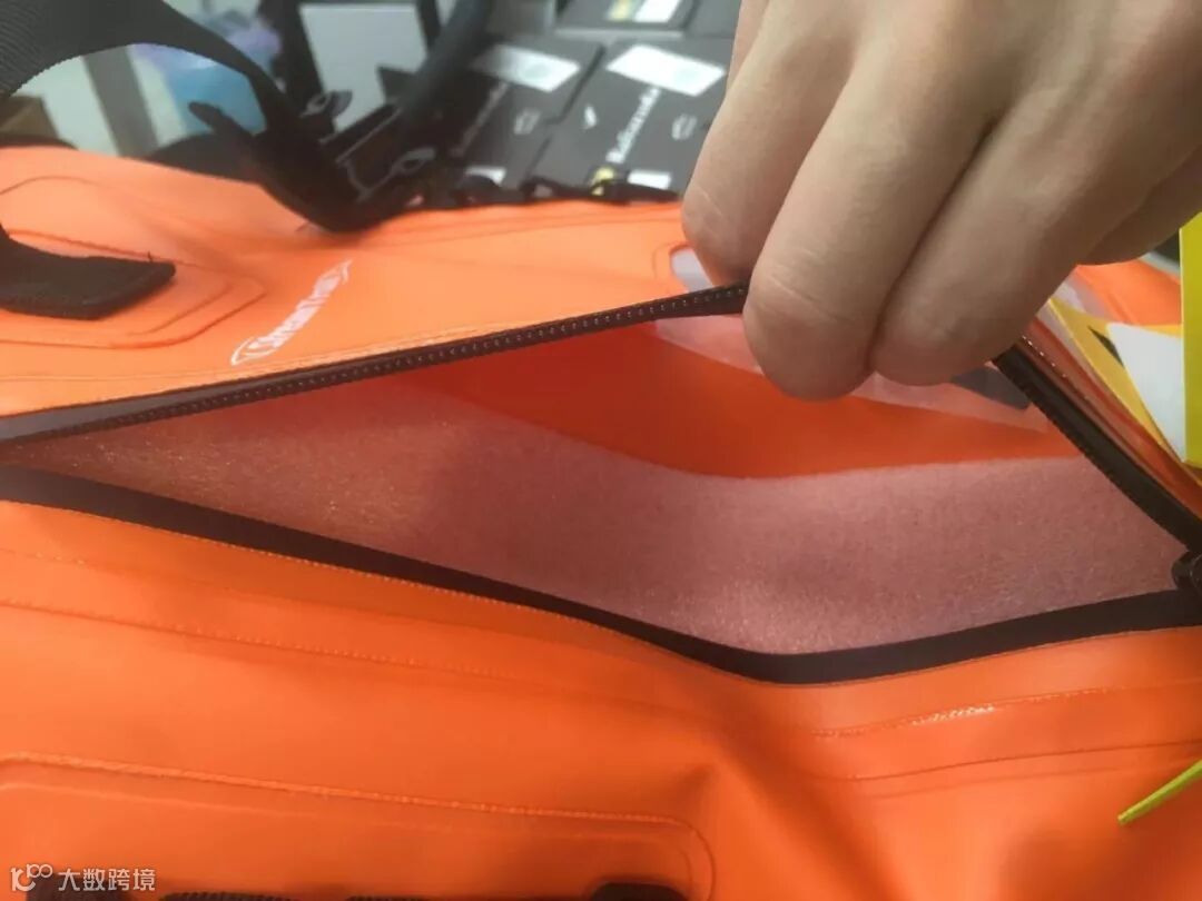 同样是防溅,程度也有不同,拉链部分是关键,ST的可视口拉链在拉到最顶处会有轻微的自动收拢,保证最大程度的密闭,我们知道水是有张力的,对于细小的孔洞,在没有一定压力差的情况下是不会渗入的
