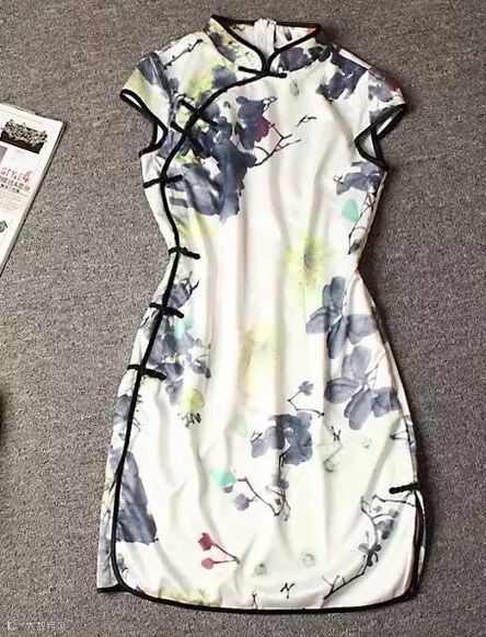 旗袍,150元。混纺面料,柔软光滑,小立领,盘扣设计,复古优雅,修身版型,水墨印花,端庄大方,古香古色。