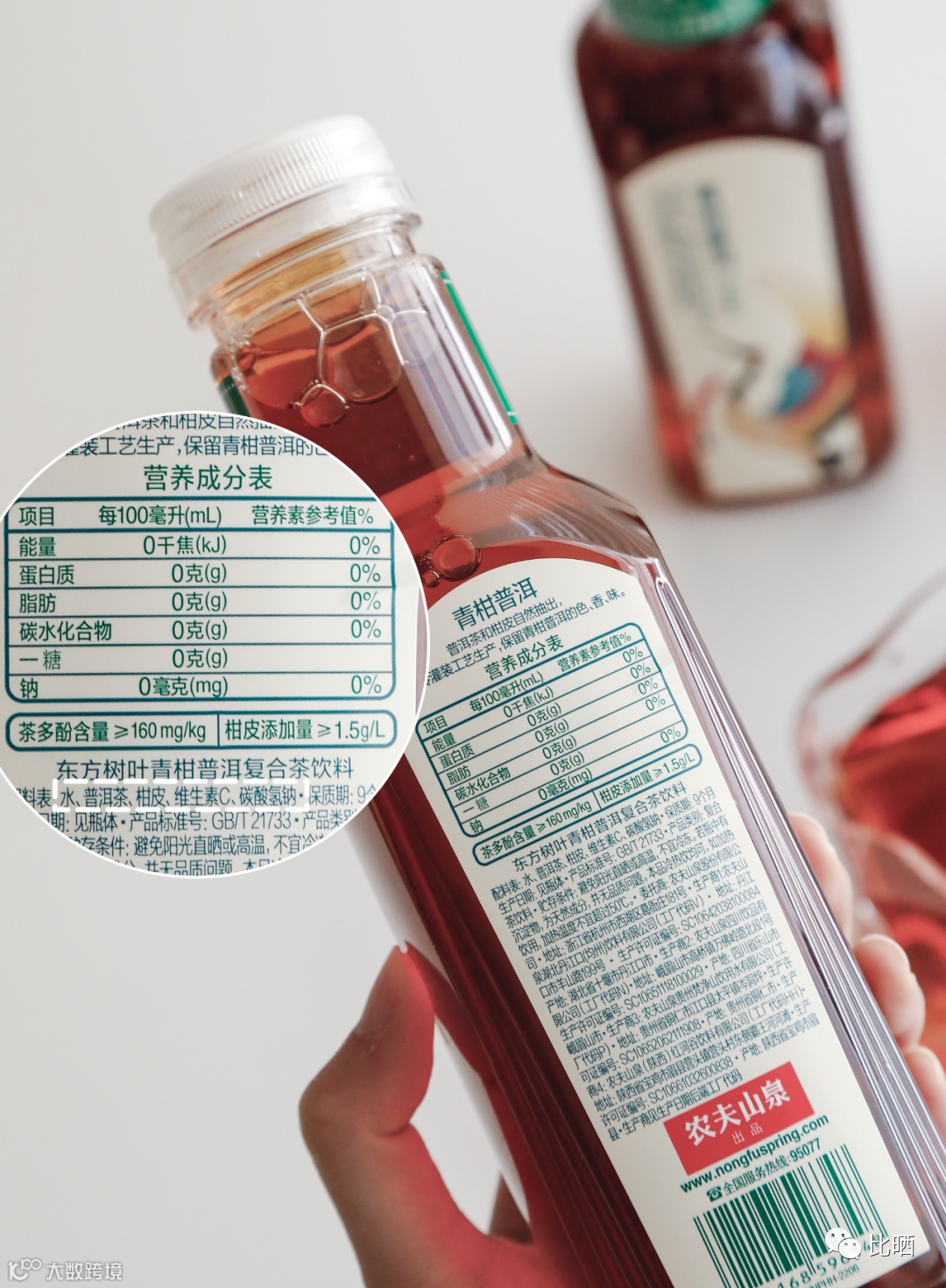 它的配料表也蛮干净的,水、普洱茶、柑皮、vc等等,而且还是0卡,喝起来没啥负担感!