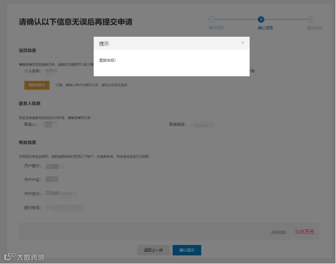 (4)提交成功,等待审核。