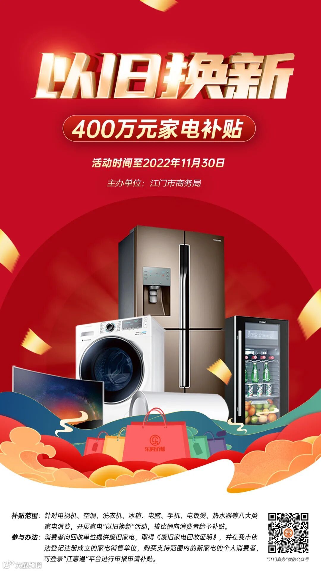 2022年江门市“以旧换新”家电促消费专项活动正式发布,最高补贴500元/件(台)!