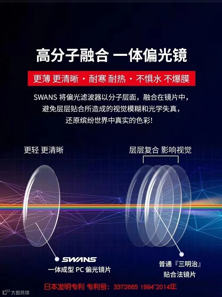 SWANS专为钓鱼及水上运动爱好者专项开发的镜片;同时日常生活中使用,视野也是非常清晰自然的。