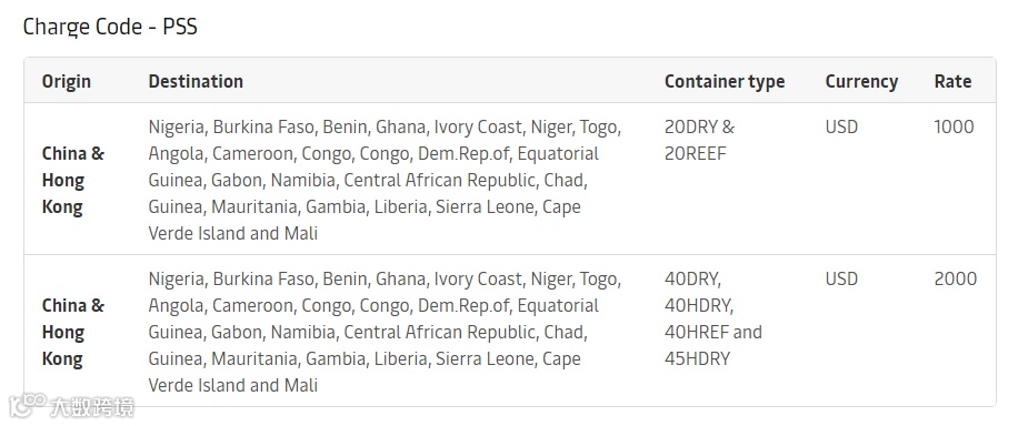 具体收费标准为:1000美元/TEU、2000美元/FEU。
