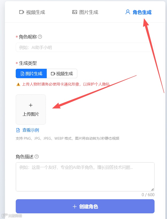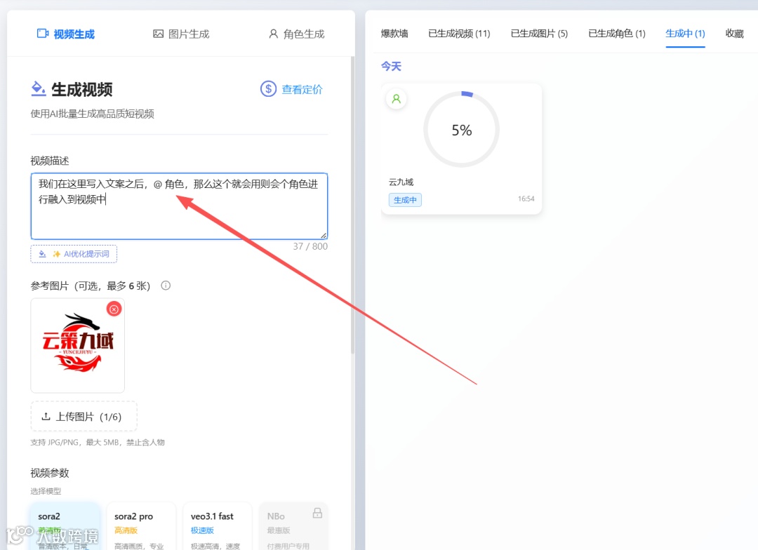 使用时选择角色,即可产出当前角色与产品的视频