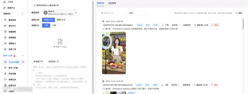 只需在后台直接选择已保存的角色面孔,即可一键生成视频。