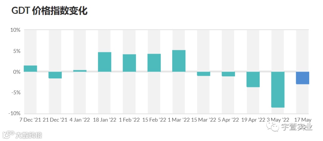 本次GDT拍卖各品种价格变化不大,近期大家关注最多的还是人民币贬值带来的进口成本增加和新冠疫情反复之下的市场需求变化。