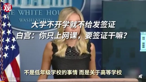 7月8日,在白宫的新闻发布会上,白宫发言人麦克纳尼被问及此事,她说:“如果学生只上网课,那为什么要美国签证呢,该起诉的是那些付了学费没法去上课的学生啊!”