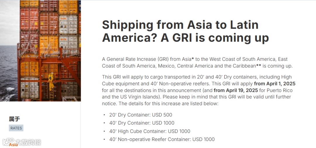 近日,赫伯罗特发布公告,宣布从亚洲到南美洲西海岸、南美洲东海岸、墨西哥、中美洲和加勒比海的GRI上调。