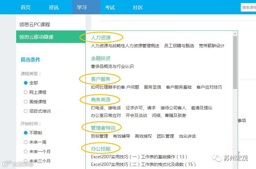 宏茂商学院学习平台,不仅有完整的外贸知识体系,还为家人们提供了全面的专业类课程:管理类、财务类、人力资源类、办公技能类……应有尽有,总有一款适合你。