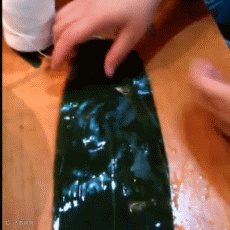3、在圆锥状的筒中装入糯米。
