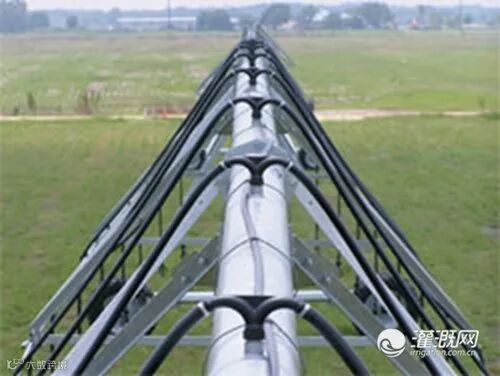 高位安装时,喷头在喷灌机主管之上,早期的喷灌机均采用这种方式,此时喷洒均匀度最大,蒸发量也最大。