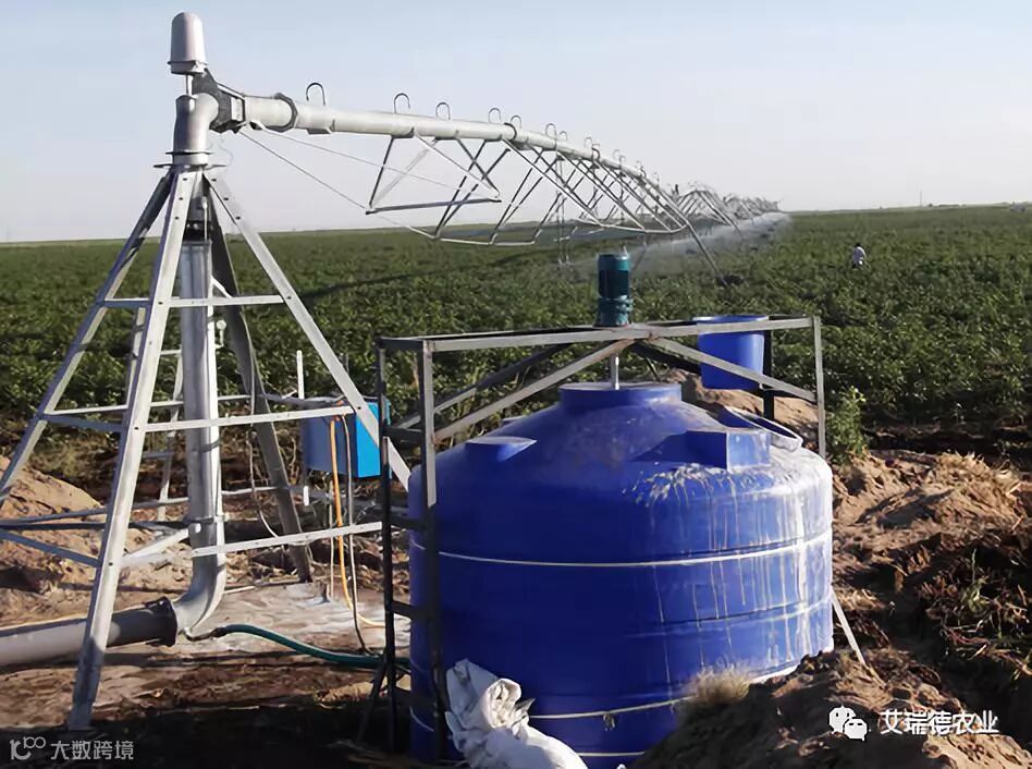 熟悉滴灌的朋友都知道,滴灌与施肥结合在一起使用效果非常的棒,今天艾瑞德小编和您一起来了解大型喷灌机水肥一体化。小编参考并引用了严海军教授2015年在《农业机械学报》发表的学术论文《圆形喷灌机泵注式施肥装置设计与田间试验》,理论和实践证明,通过喷灌机对作物进行均匀、适量的喷洒肥液,可以提高水肥利用以及作物的产量和品质,降低劳动强度。有兴趣的朋友可以翻阅一下以便了解更多知识。