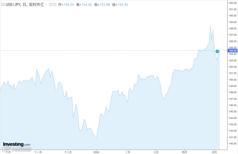 日本央行的数据显示,当局花费了超过9万亿日元来捍卫日元,帮助日元在一周内从1美元兑160.245日元的34年低点升至大约一个月的高点151.86。截至目前,日元兑美元位于155日元附近,年内累计跌幅接近9%。